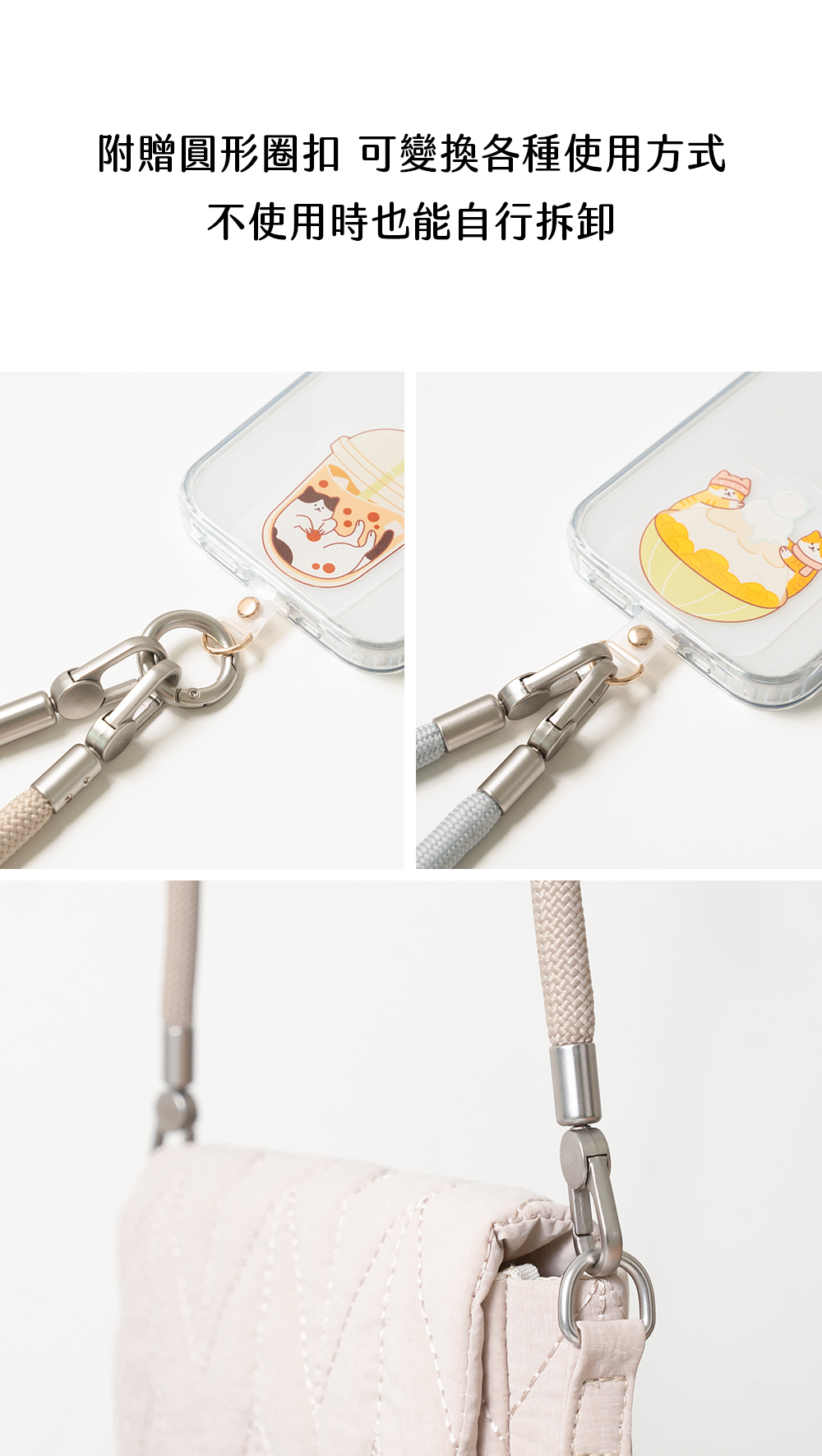 ▸附贈圓形圈扣,自由變換單雙鉤模式
