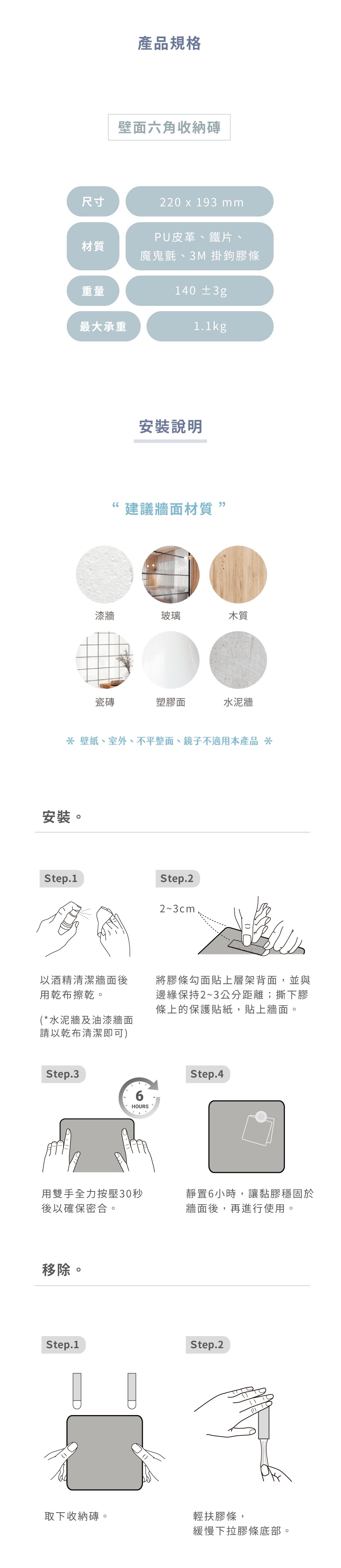 ‣ 多款造型自由拼貼,安裝快速,不傷牆面不留痕