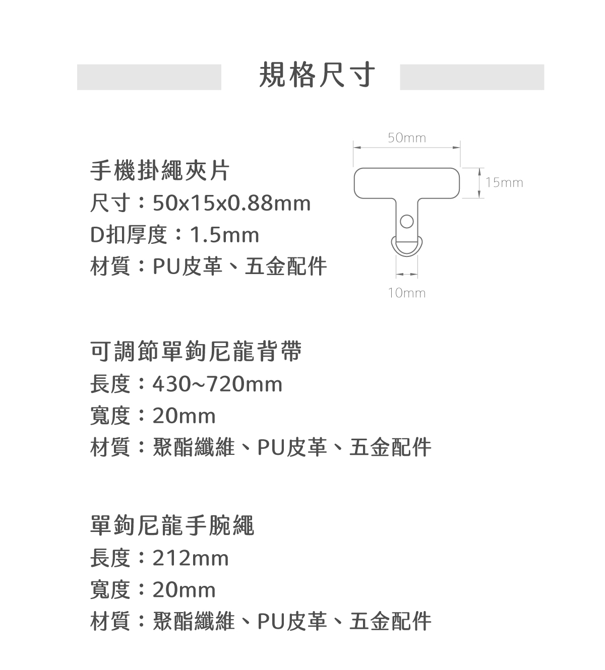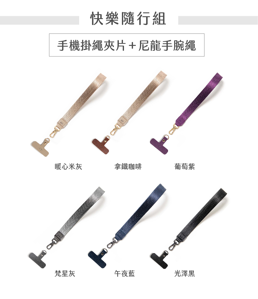 組合包含:手機掛繩夾片、單鉤尼龍手腕繩