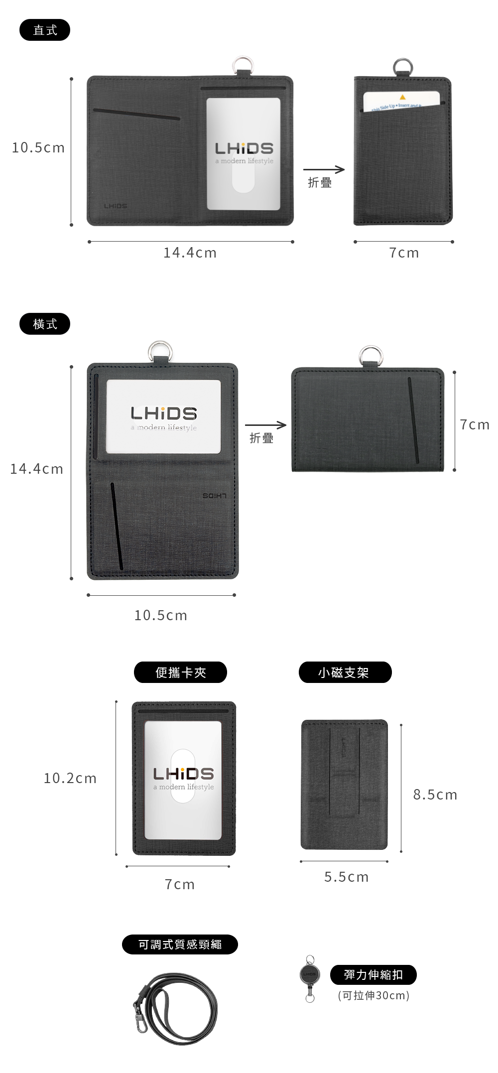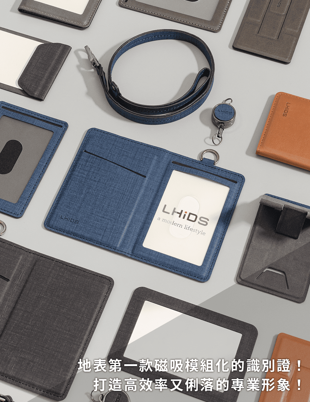 ▸商品四件組包含:翻轉磁吸識別證、便攜卡夾、小磁支架、可調式質感頸繩