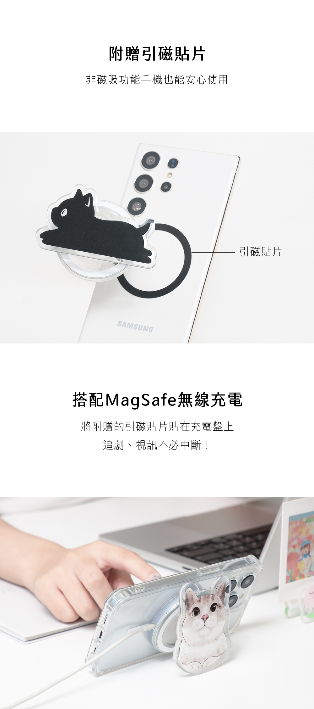 ▸附贈引磁貼片,非磁吸手機(殼)也能使用