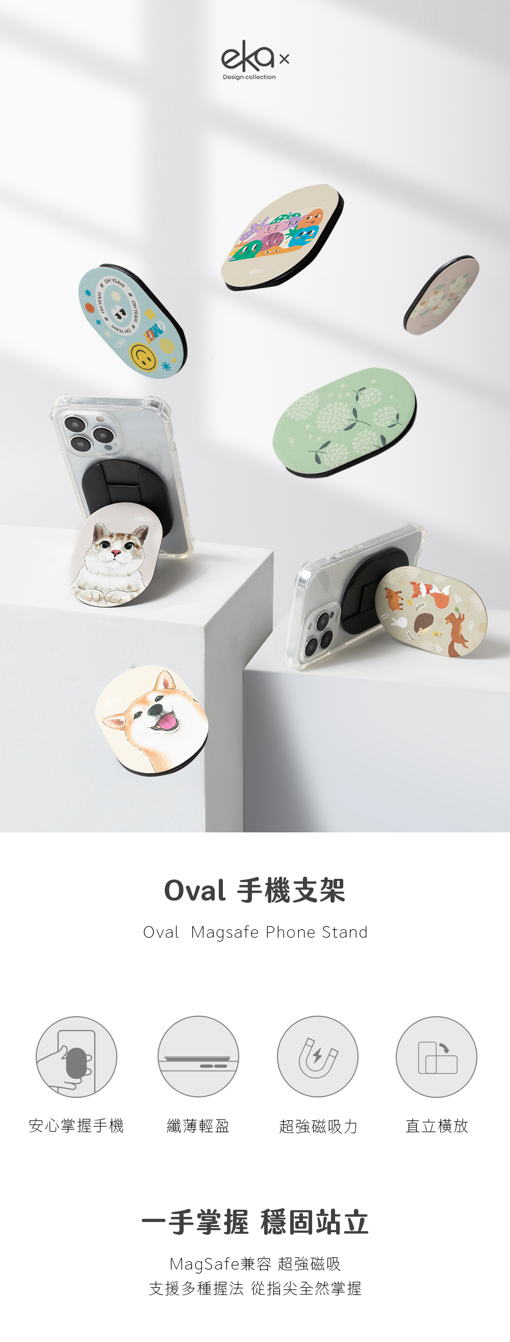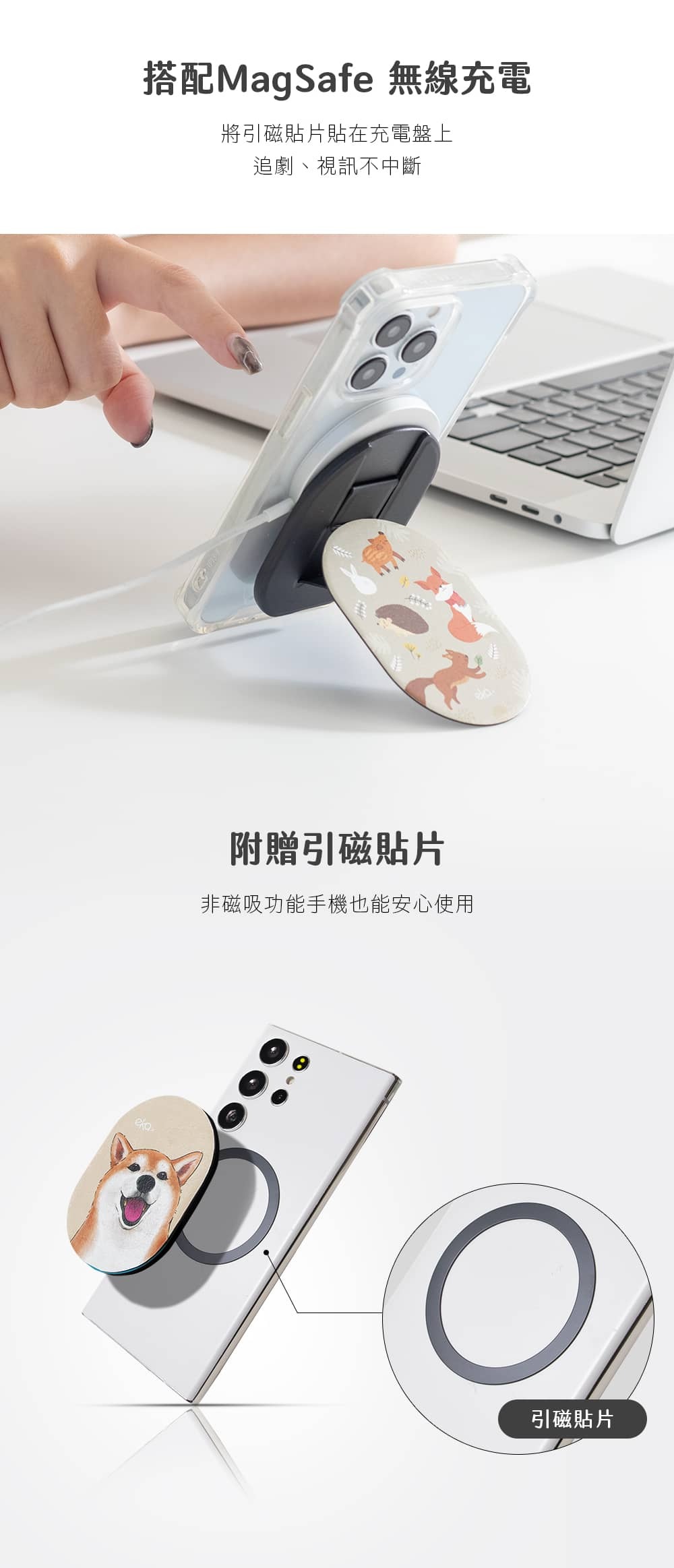 ▸附贈引磁貼片,非磁吸手機(殼)也能使用