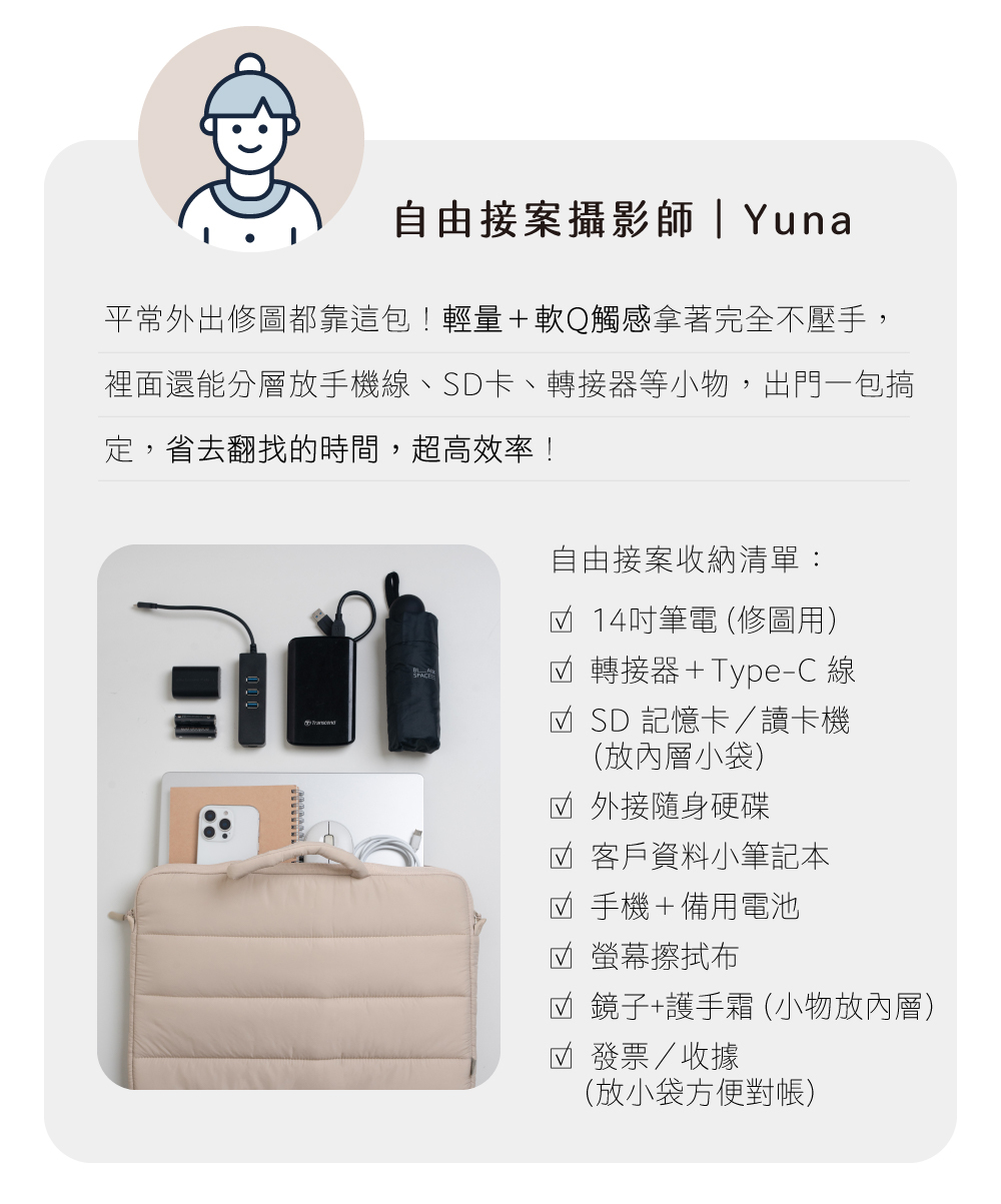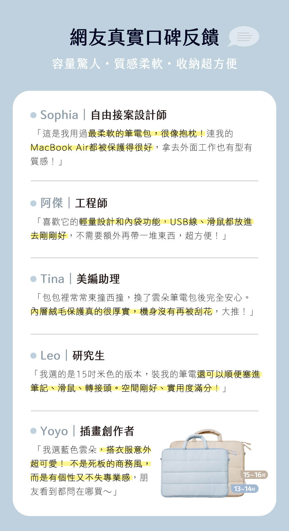 適合13吋~14吋筆電:33 x 25 x 2 公分
