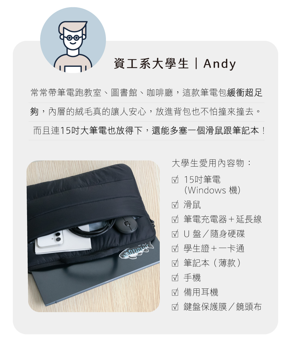 適合15吋~16吋筆電:37.5 x 28 x2.4 公分
