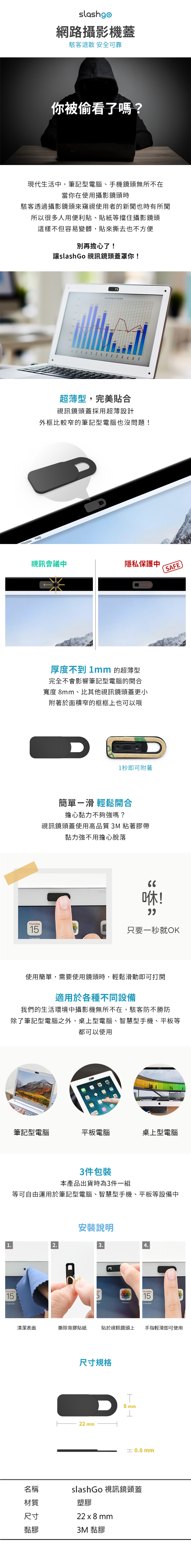 ▸完美貼身設計,100%覆蓋鏡頭,防止鏡頭駭客