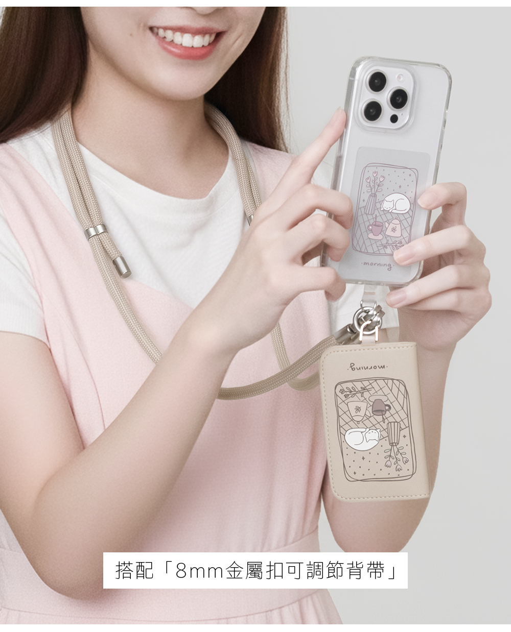 ▸可搭配手機夾片、掛繩背帶、手腕繩等隨行使用