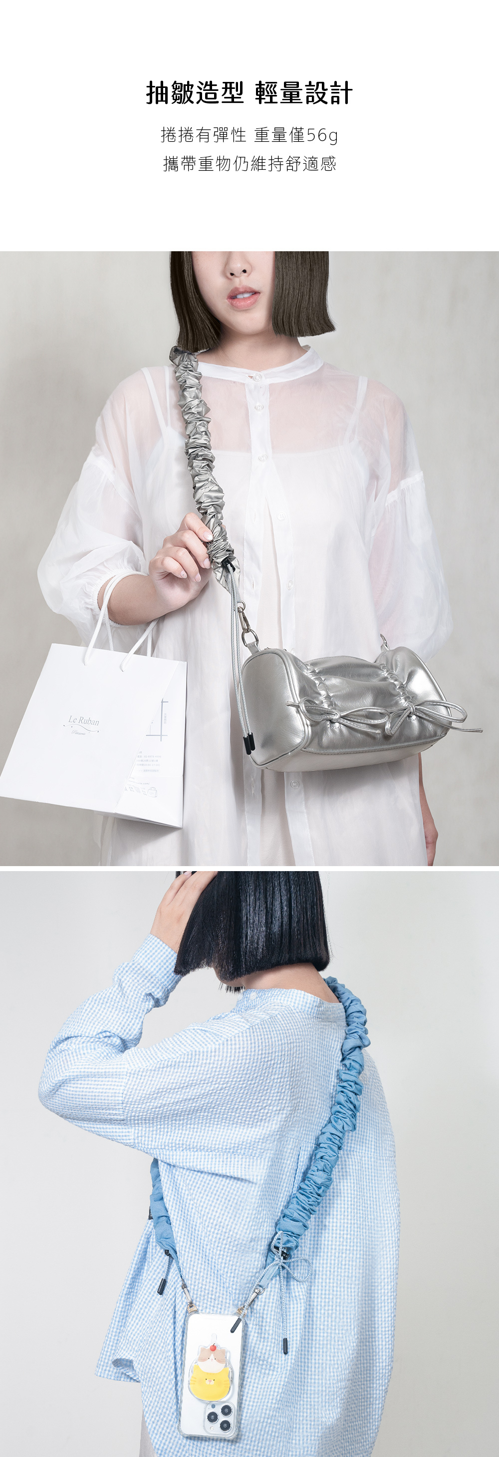 ▸附贈圓形圈扣,單雙鉤任意變換