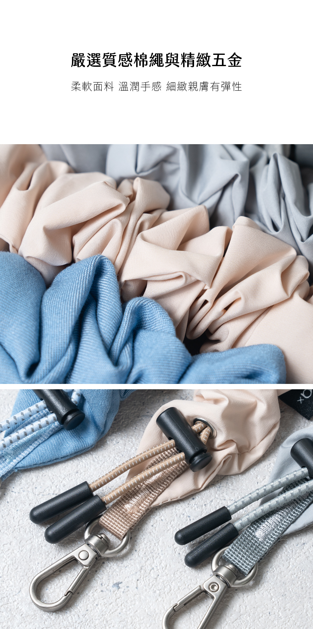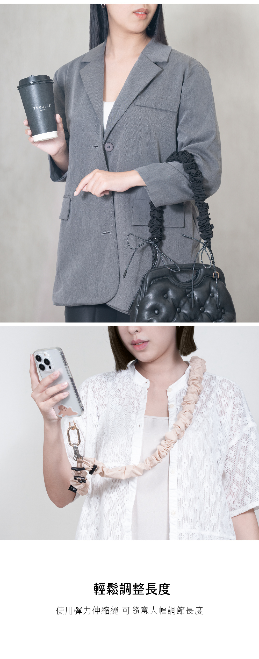 ▸使用彈力伸縮繩可調整長度