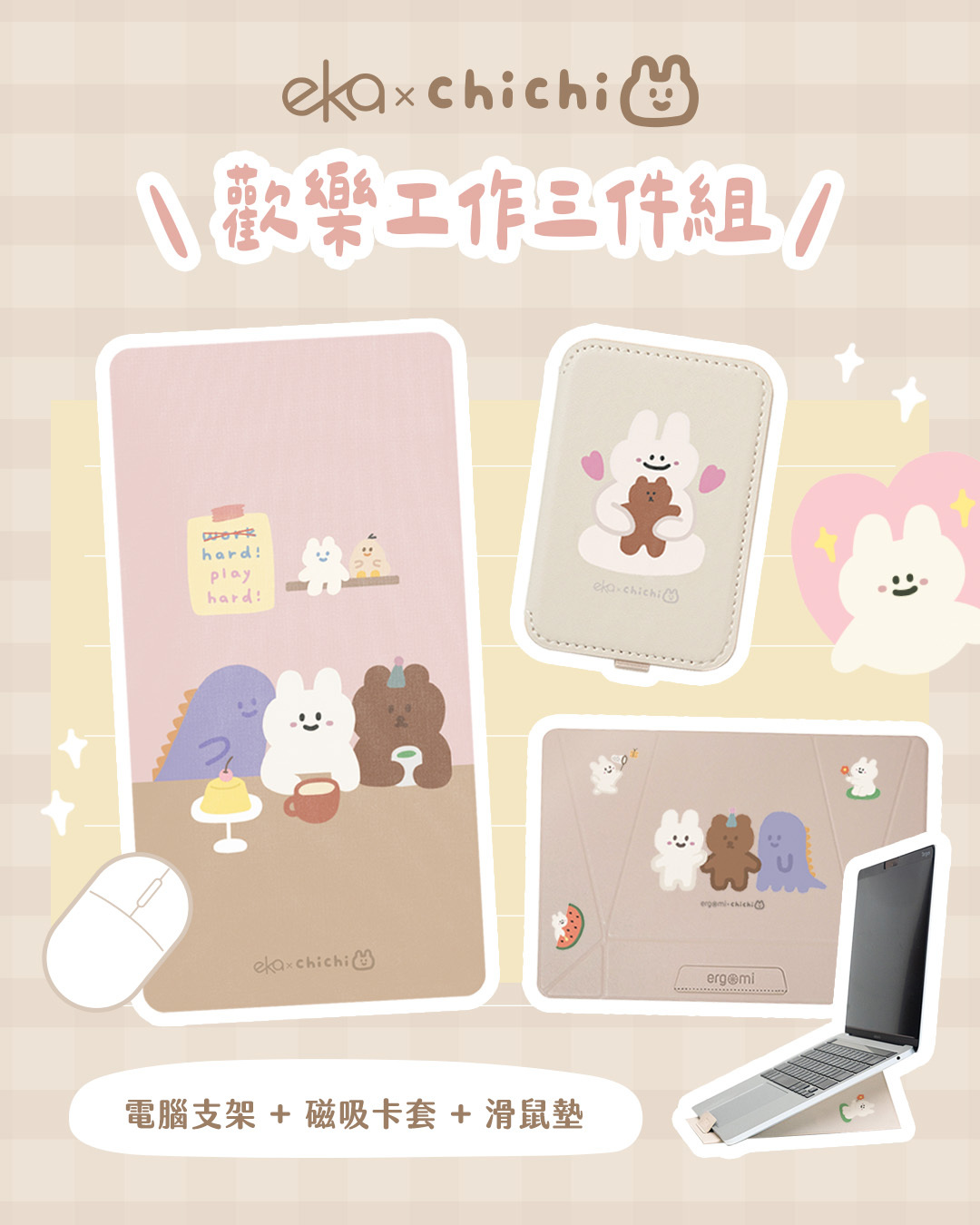 歡樂工作三件組 (筆電支架+三合一鼠墊+磁吸卡套)【ekax x 87小兔】