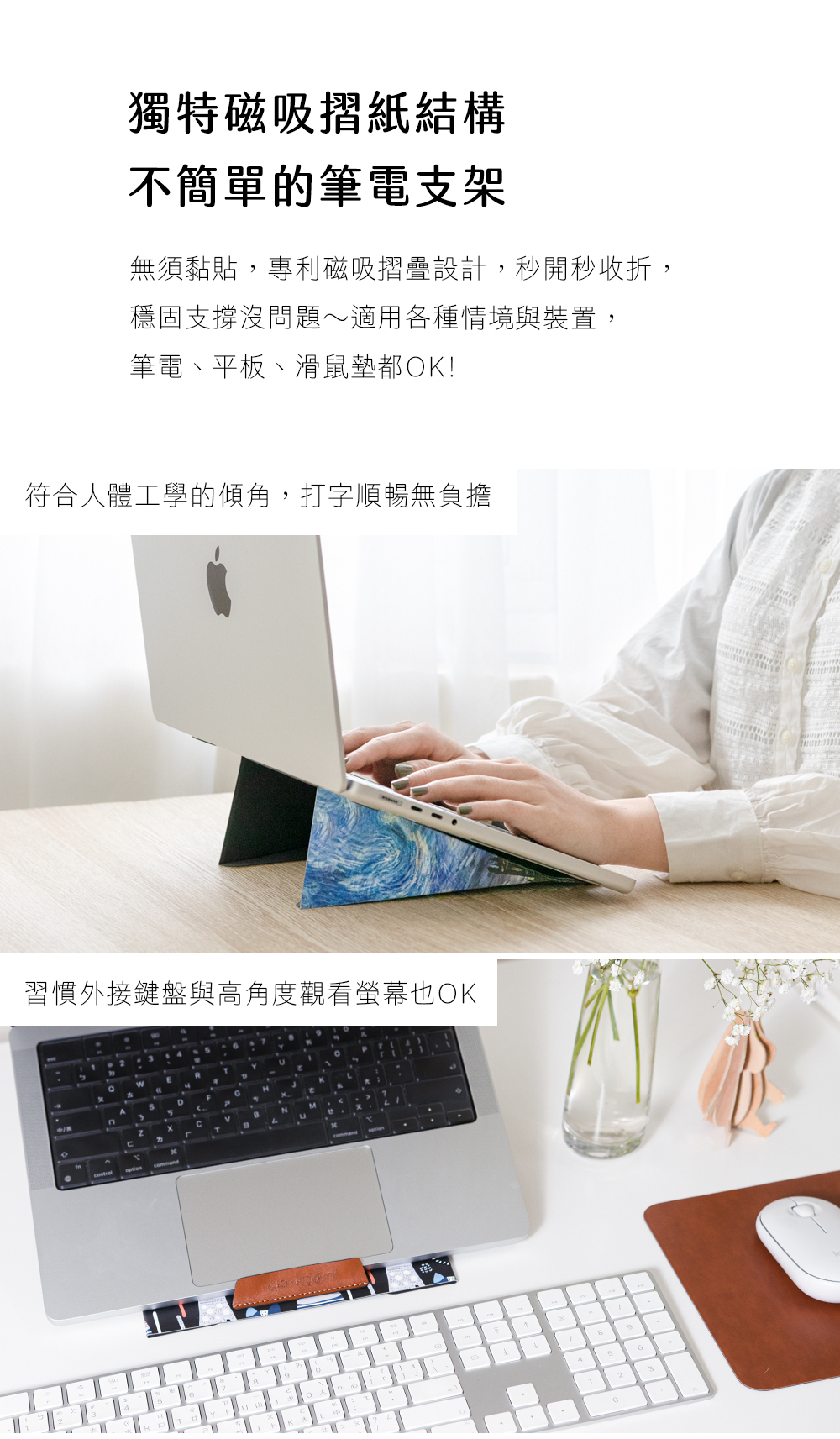 ▸獨特磁吸摺紙結構,無須黏貼,秒開秒收折